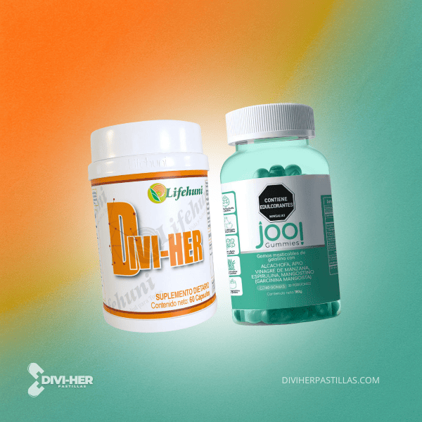 Este combo reúne dos suplementos dietarios pensados para acompañar, de forma práctica, tus hábitos de control de peso y tu rutina diaria: DIVI-HER en cápsulas y Gomas de Vinagre de Manzana con mezcla vegetal. Son suplementos, no medicamentos; funcionan como apoyo dentro de una alimentación balanceada, hidratación adecuada, descanso y actividad física